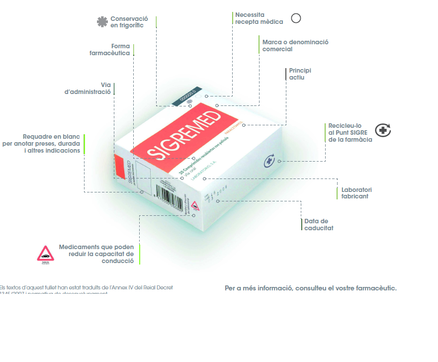 Podeu consultar la secció de l'Agència Espanyola de Medicaments (AEMPS) amb informació útil sobre les recomanacions generals sobre el disseny de l'etiquetat de medicaments