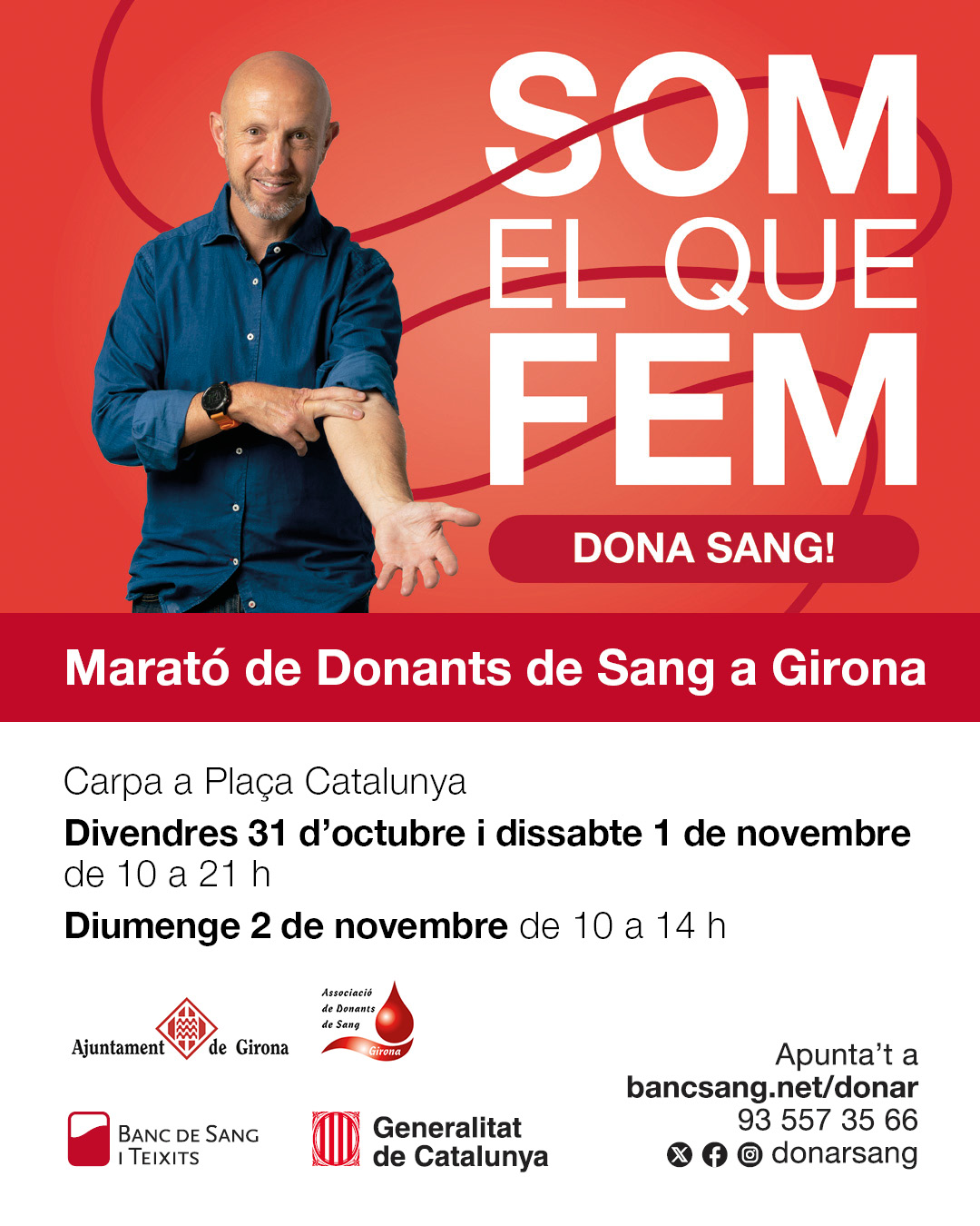 Un any més, Girona acull la Marató de Donants de Sang, una cita solidària imprescindible que enguany es farà els dies 31 d’octubre, 1 i 2 de novembre a la carpa instal·lada a la plaça Catalunya.
