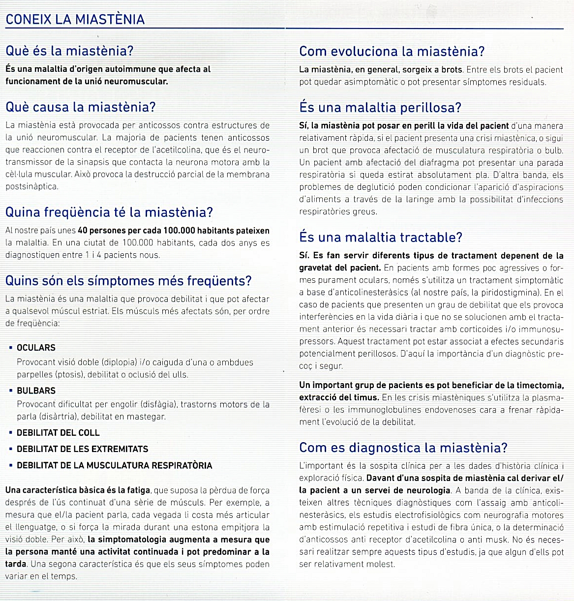 - Treballar per tal que el diagnòstic de la Miastènia es pugui fer de forma precoç i segur.